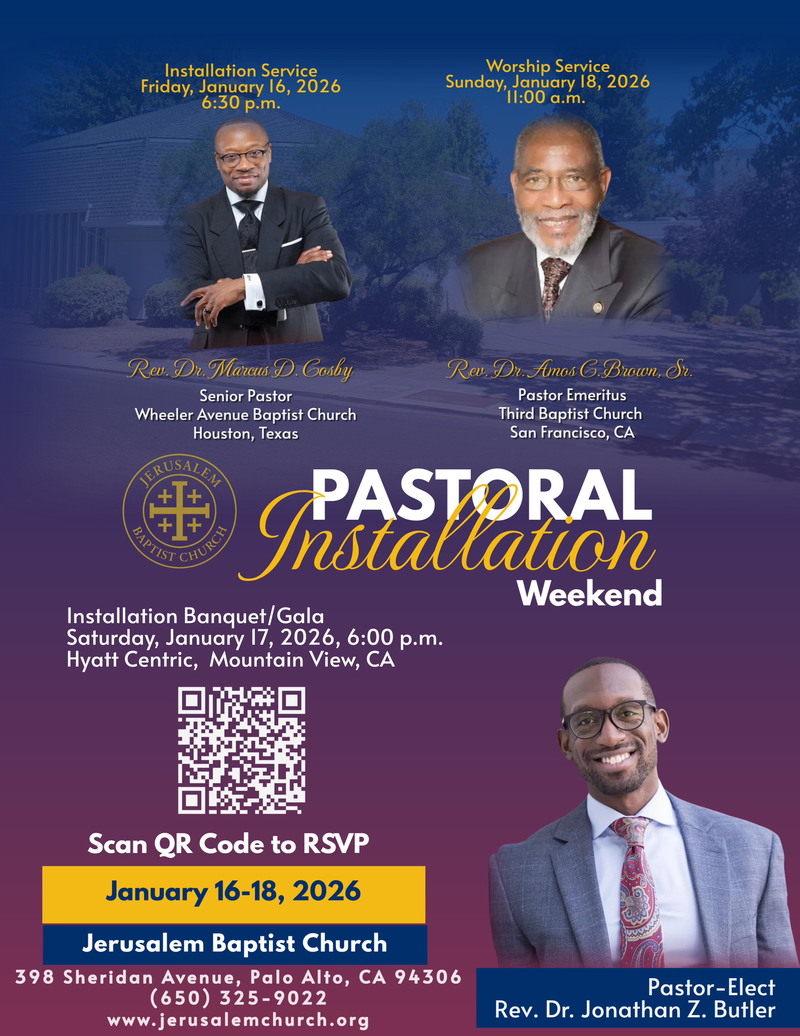 On Martin Luther King, Jr. Weekend, January 16-18, 2026), Jerusalem will be celebrating the installation of Pastor-Elect Rev. Dr. Jonathan Z. Butler.